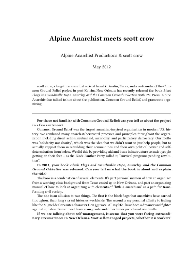 Author: scott crow, Alpine Anarchist Productions