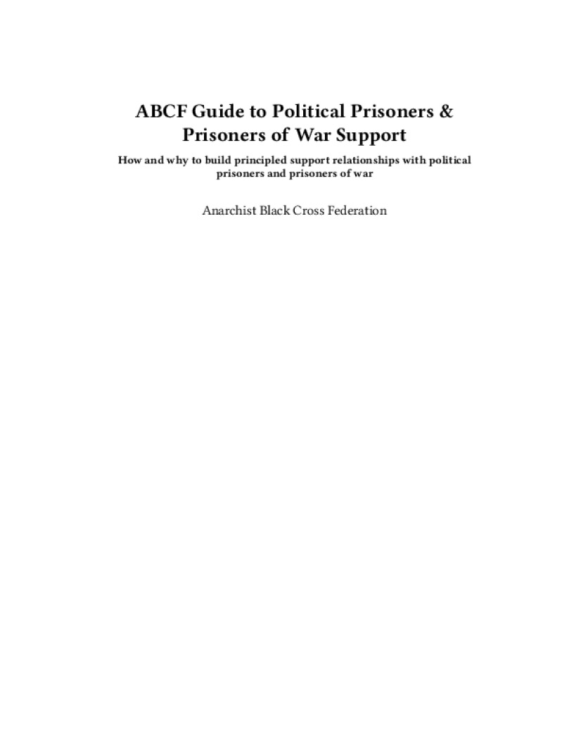 Zine ABCF Guide to Political Prisoners & Prisoners of War Support Author: Anarchist Black Cross FederationLanguage: enCatalog: The Anarchist Library11 pages. Read online: html • pdf •imposed pdf • a4 pdf • epub • muse • tex Share: We mail all zines to incarcerated people for free.