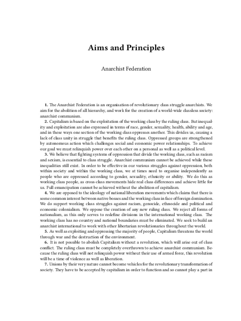 Zine Aims and Principles Author: Anarchist FederationLanguage: enCatalog: The Anarchist Library3 pages. Read online: html • pdf •imposed pdf • a4 pdf • epub • muse • tex Share: We mail all zines to incarcerated people for free.