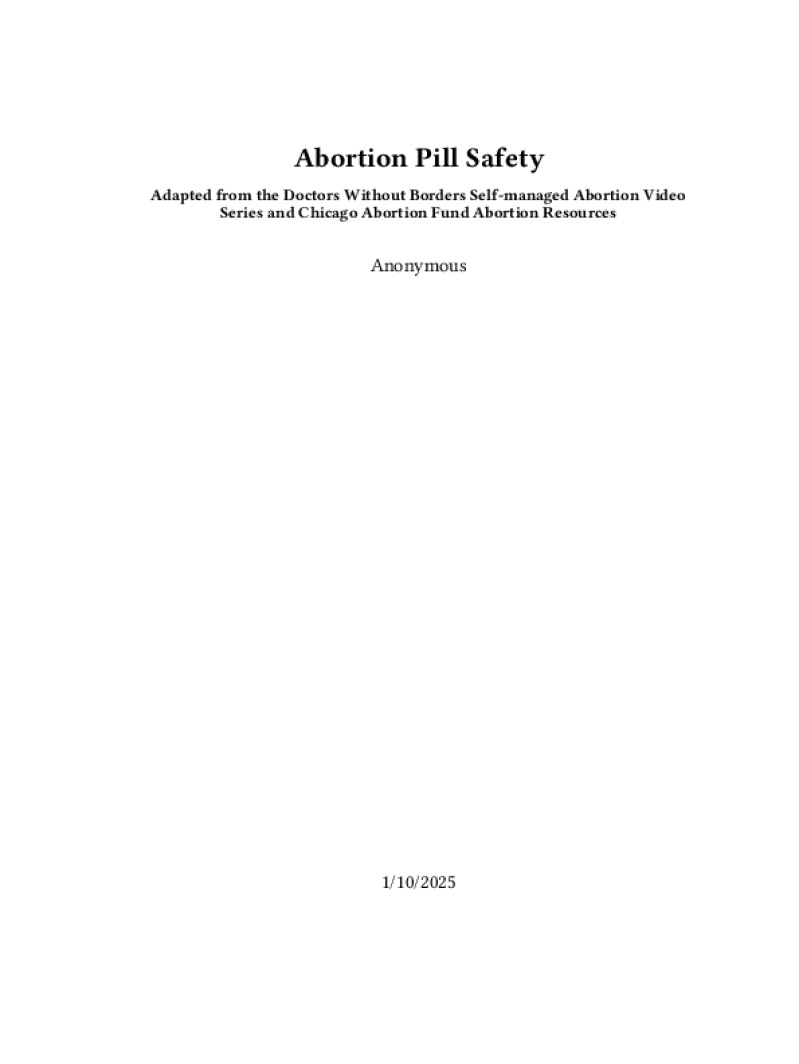 Zine Abortion Pill Safety Author: AnonymousPublished: 1/10/2025Language: enCatalog: The Anarchist Library10 pages. Read online: html • pdf •imposed pdf • a4 pdf • epub • muse • tex Share: We mail all zines to incarcerated people for free.