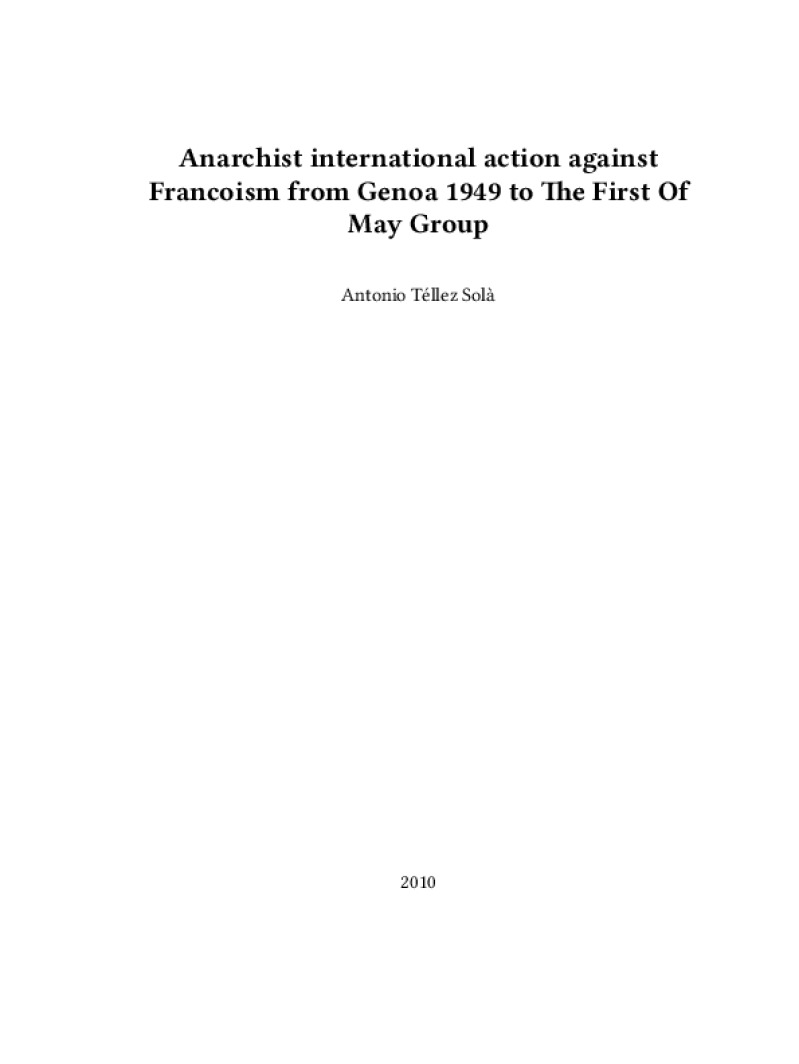 Zine Anarchist international action against Francoism from Genoa 1949 to The First Of May Group Author: Antonio Téllez SolàPublished: 2010Language: enCatalog: The Anarchist Library21 pages. Read online: html • pdf •imposed pdf • a4 pdf • epub • muse • tex Share: We mail all zines to incarcerated people for free.
