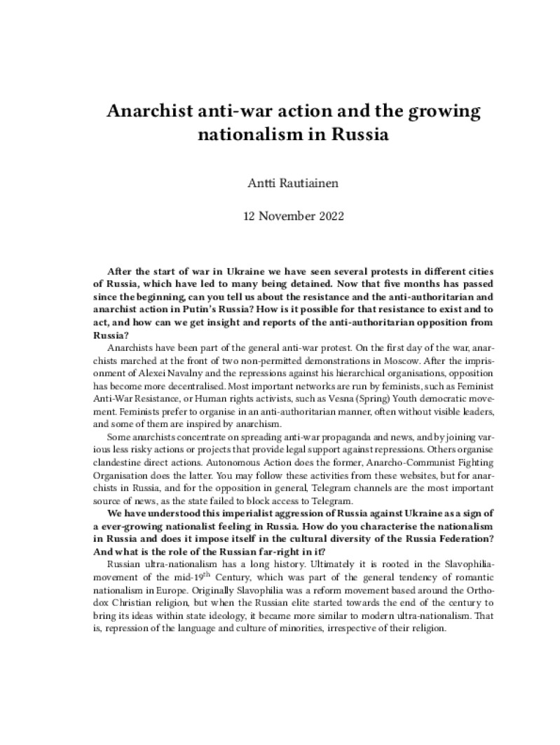 Anarchist anti-war action and the growing nationalism in Russia