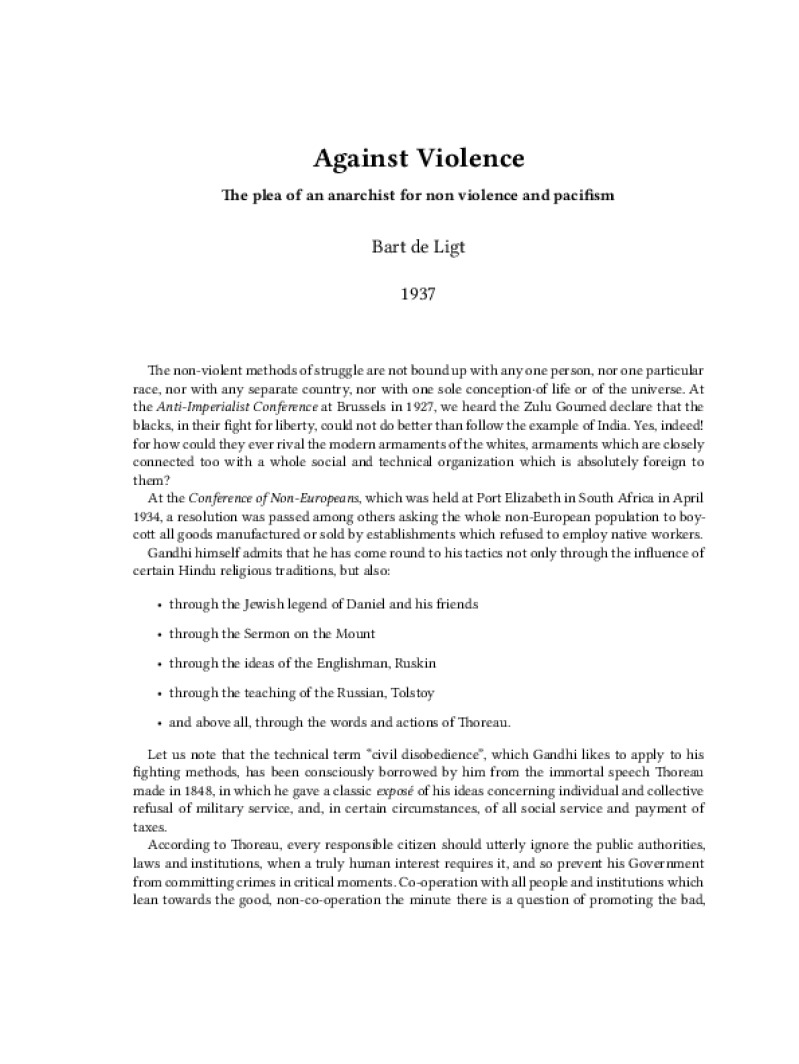 Zine Against Violence Author: Bart de LigtPublished: 1937Language: enCatalog: The Anarchist Library5 pages. Read online: html • pdf •imposed pdf • a4 pdf • epub • muse • tex Share: We mail all zines to incarcerated people for free.