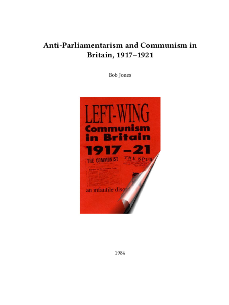 Zine Anti-Parliamentarism and Communism in Britain, 1917–1921 Author: Bob JonesPublished: 1984Language: enCatalog: The Anarchist Library17 pages. Read online: html • pdf •imposed pdf • a4 pdf • epub • muse • tex Share: We mail all zines to incarcerated people for free.