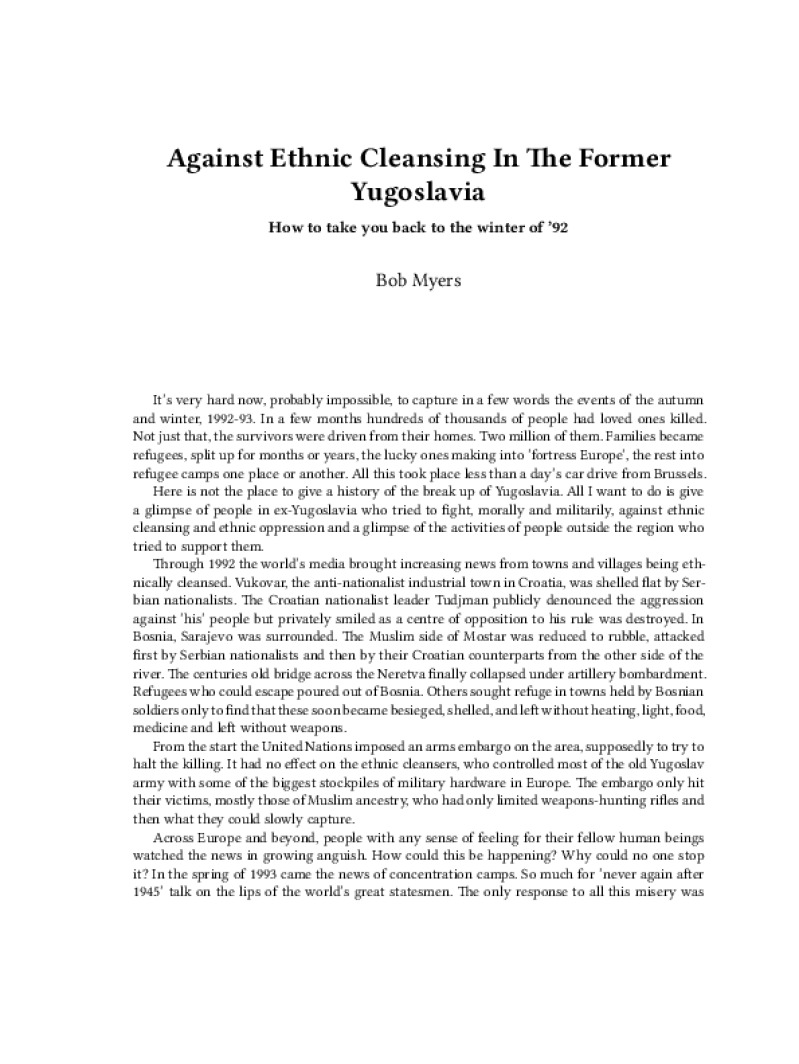 Zine Against Ethnic Cleansing In The Former Yugoslavia Author: Bob MyersLanguage: enCatalog: The Anarchist Library15 pages. Read online: html • pdf •imposed pdf • a4 pdf • epub • muse • tex Share: We mail all zines to incarcerated people for free.