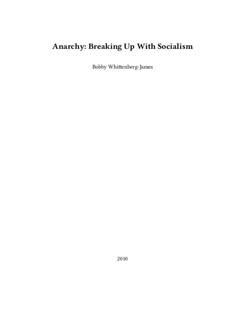 Zine Anarchy: Breaking Up With Socialism Author: Bobby Whittenberg-JamesPublished: 2010Language: enCatalog: The Anarchist Library6 pages. Read online: html • pdf •imposed pdf • a4 pdf • epub • muse • tex Share: We mail all zines to incarcerated people for free.