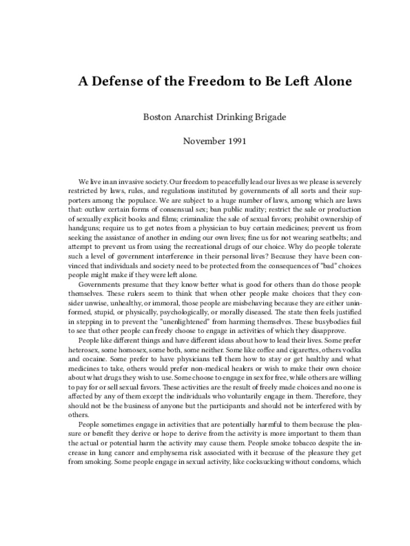 A Defense of the Freedom to Be Left Alone