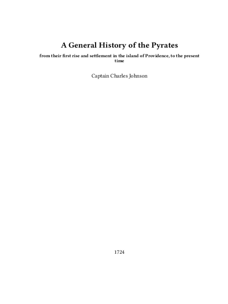 Zine A General History of the Pyrates Author: Captain Charles JohnsonPublished: 1724Language: enCatalog: The Anarchist Library198 pages. Read online: html • pdf •imposed pdf • a4 pdf • epub • muse • tex Share: We mail all zines to incarcerated people for free.