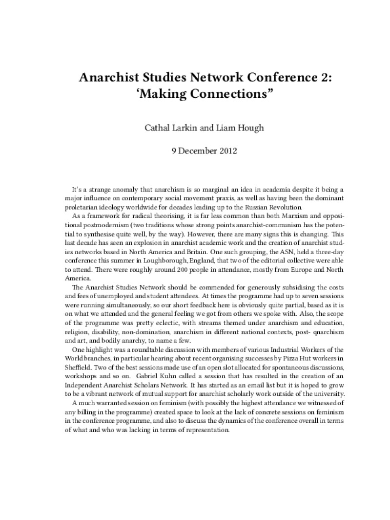 Anarchist Studies Network Conference 2: ‘Making Connections”