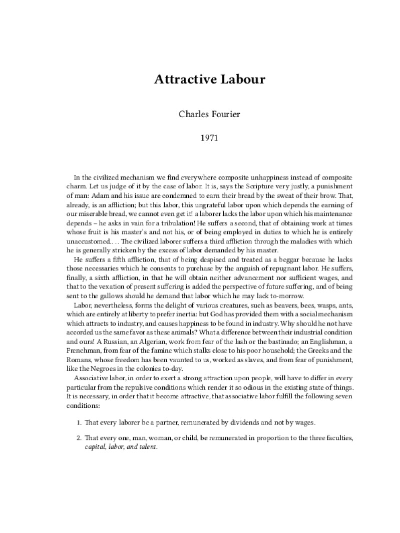 Zine Attractive Labour Author: Charles FourierPublished: 1971Language: enCatalog: The Anarchist Library4 pages. Read online: html • pdf •imposed pdf • a4 pdf • epub • muse • tex Share: We mail all zines to incarcerated people for free.