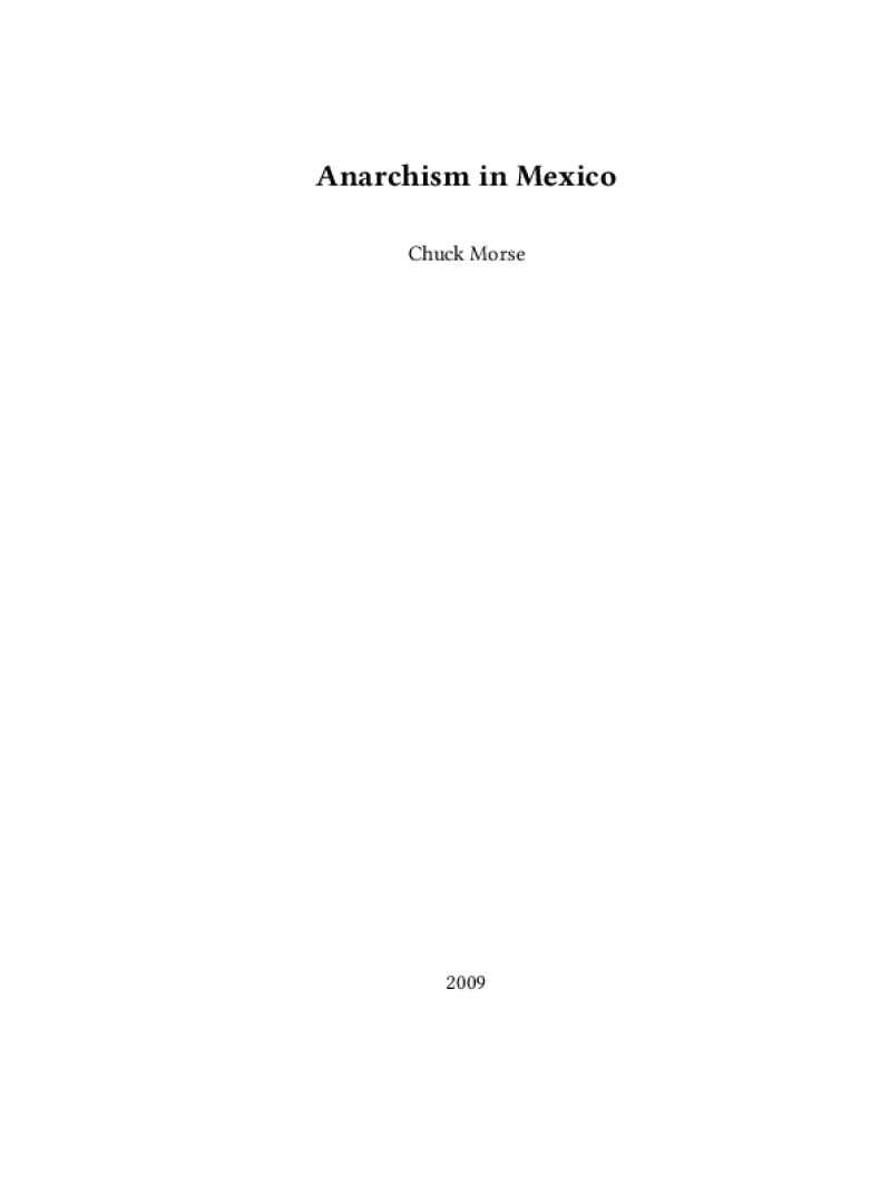 Zine Anarchism in Mexico Author: Chuck MorsePublished: 2009Language: enCatalog: The Anarchist Library7 pages. Read online: html • pdf •imposed pdf • a4 pdf • epub • muse • tex Share: We mail all zines to incarcerated people for free.