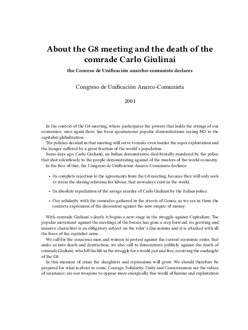 About the G8 meeting and the death of the comrade Carlo Giulinai