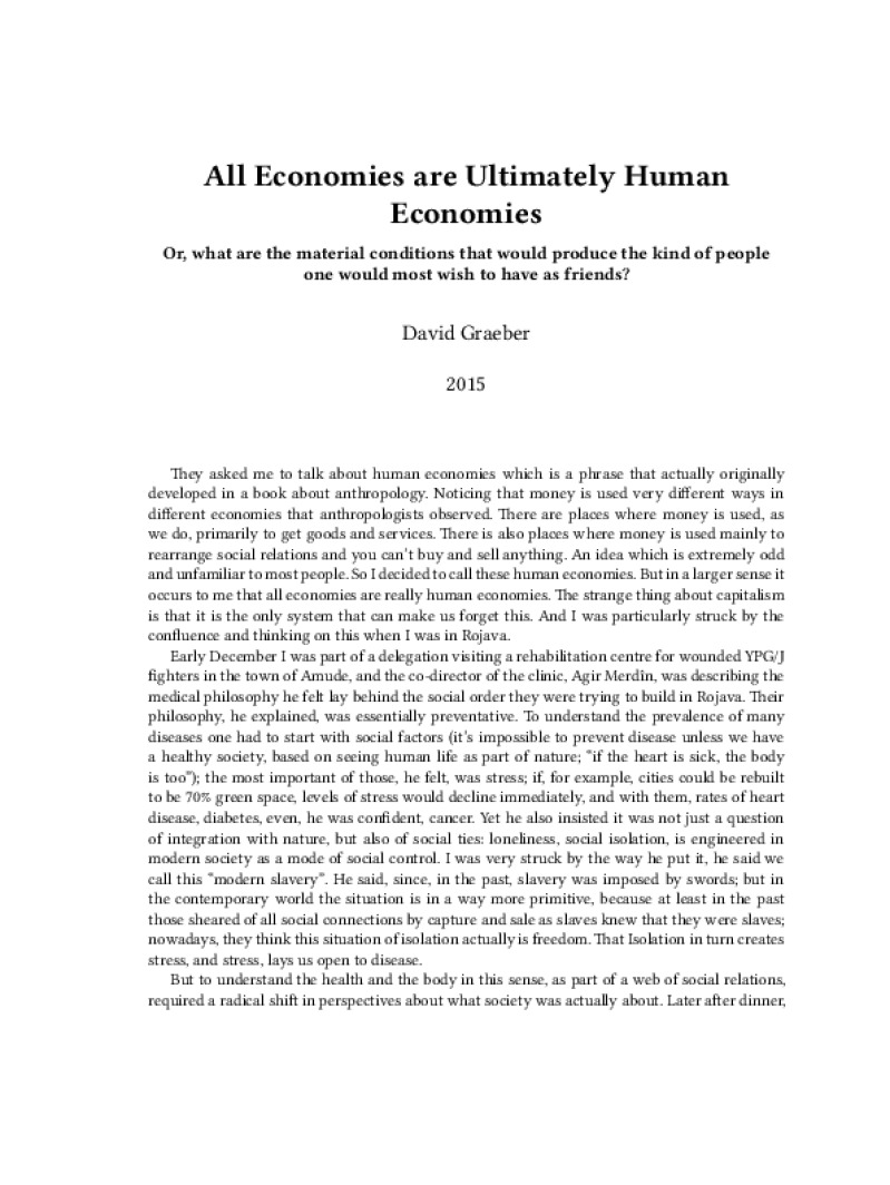 Zine All Economies are Ultimately Human Economies Author: David GraeberPublished: 2015Language: enCatalog: The Anarchist Library7 pages. Read online: html • pdf •imposed pdf • a4 pdf • epub • muse • tex Share: We mail all zines to incarcerated people for free.