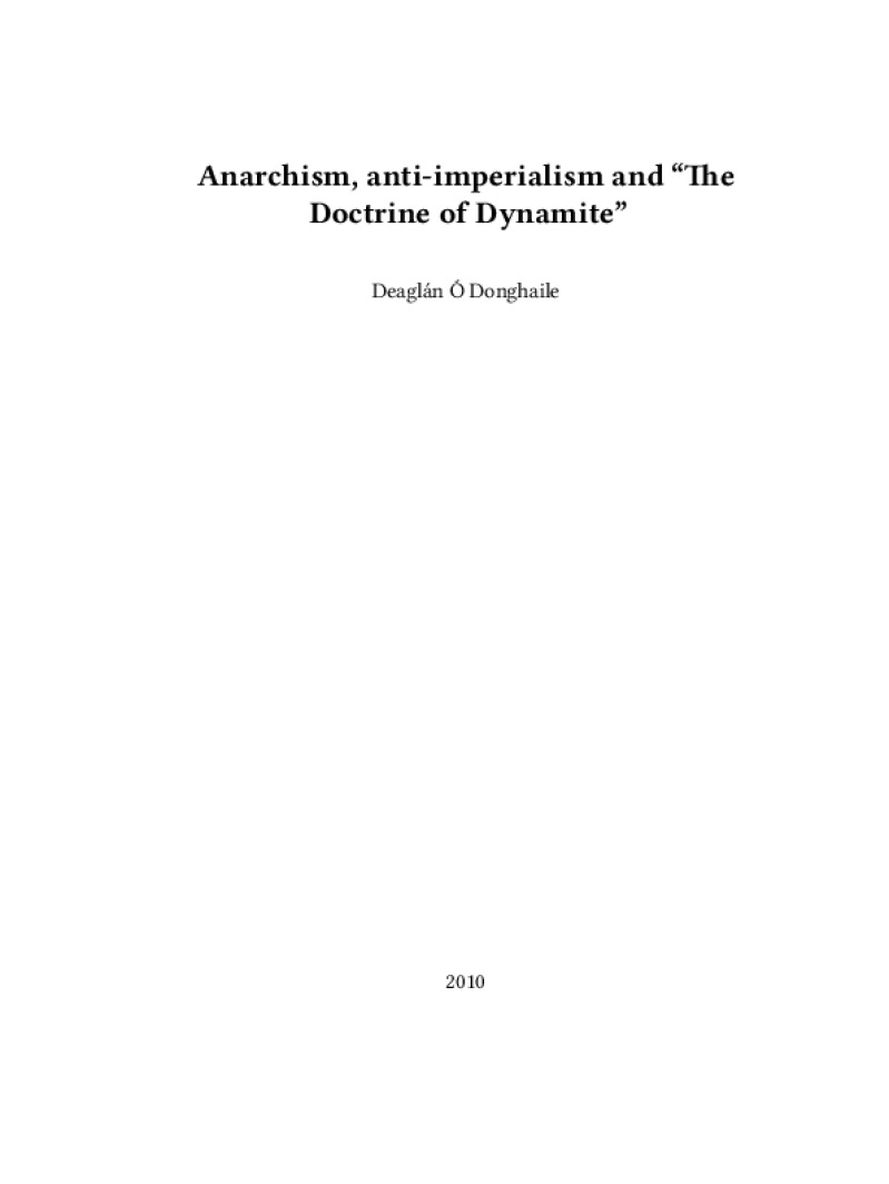 Zine Anarchism, anti?imperialism and “The Doctrine of Dynamite” Author: Deaglán Ó DonghailePublished: 2010Language: enCatalog: The Anarchist Library16 pages. Read online: html • pdf •imposed pdf • a4 pdf • epub • muse • tex Share: We mail all zines to incarcerated people for free.
