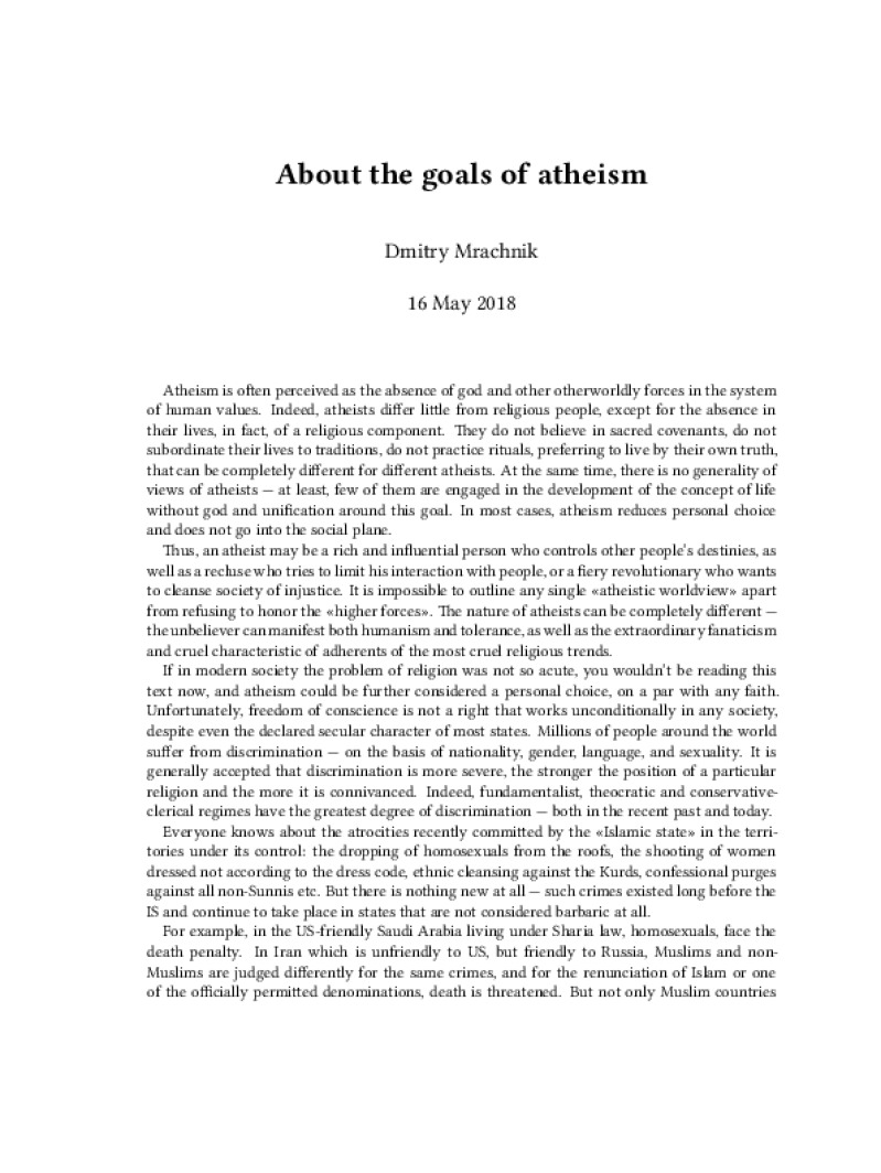 Zine About the goals of atheism Author: Dmitry MrachnikPublished: 16 May 2018Language: enCatalog: The Anarchist Library5 pages. Read online: html • pdf •imposed pdf • a4 pdf • epub • muse • tex Share: We mail all zines to incarcerated people for free.