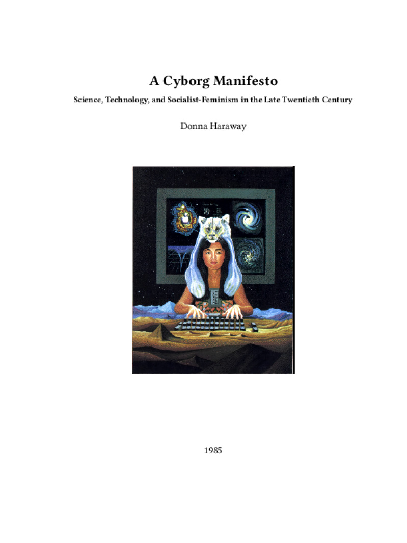 Zine A Cyborg Manifesto Author: Donna HarawayPublished: 1985Language: enCatalog: The Anarchist Library42 pages. Read online: html • pdf •imposed pdf • a4 pdf • epub • muse • tex Share: We mail all zines to incarcerated people for free.