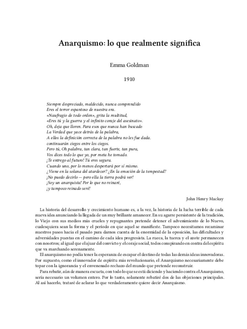 Zine Anarquismo: lo que realmente significa Author: Emma GoldmanPublished: 1910Language: esCatalog: The Anarchist Library10 pages. Read online: html • pdf •imposed pdf • a4 pdf • epub • muse • tex Share: We mail all zines to incarcerated people for free.