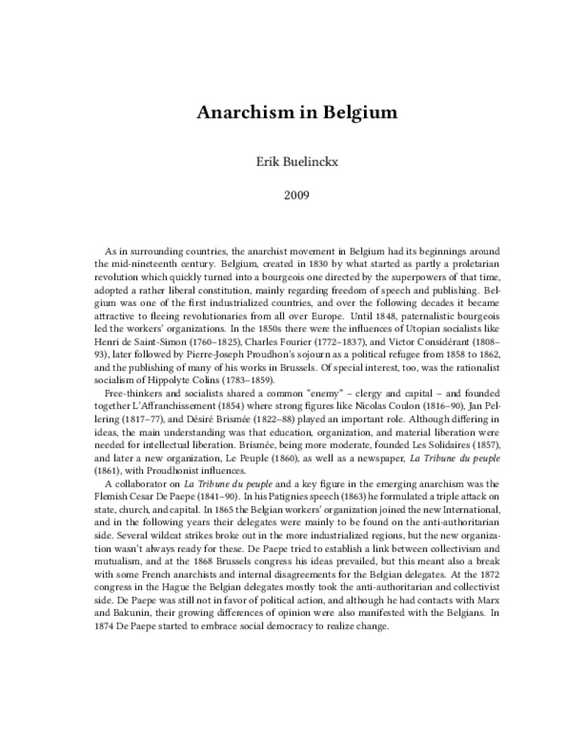 Zine Anarchism in Belgium Author: Erik BuelinckxPublished: 2009Language: enCatalog: The Anarchist Library4 pages. Read online: html • pdf •imposed pdf • a4 pdf • epub • muse • tex Share: We mail all zines to incarcerated people for free.