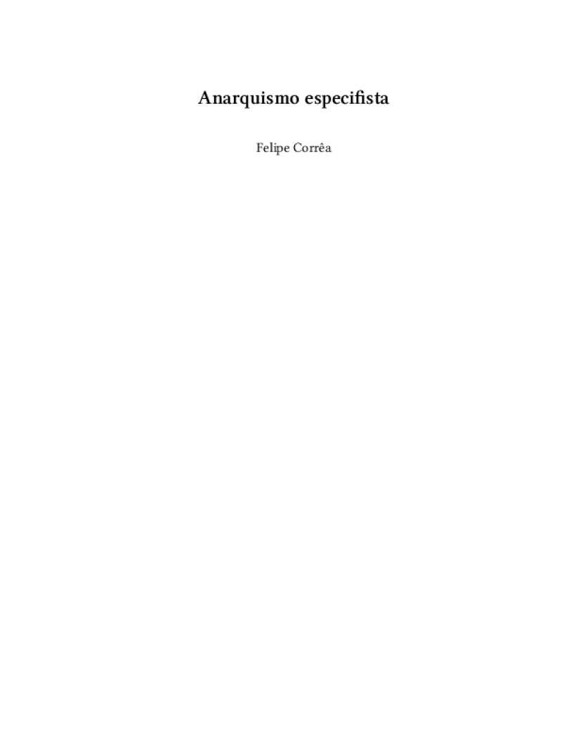 Zine Anarquismo especifista Author: Felipe Corrêa Language: esCatalog: The Anarchist Library6 pages. Read online: html • pdf •imposed pdf • a4 pdf • epub • muse • tex Share: We mail all zines to incarcerated people for free.