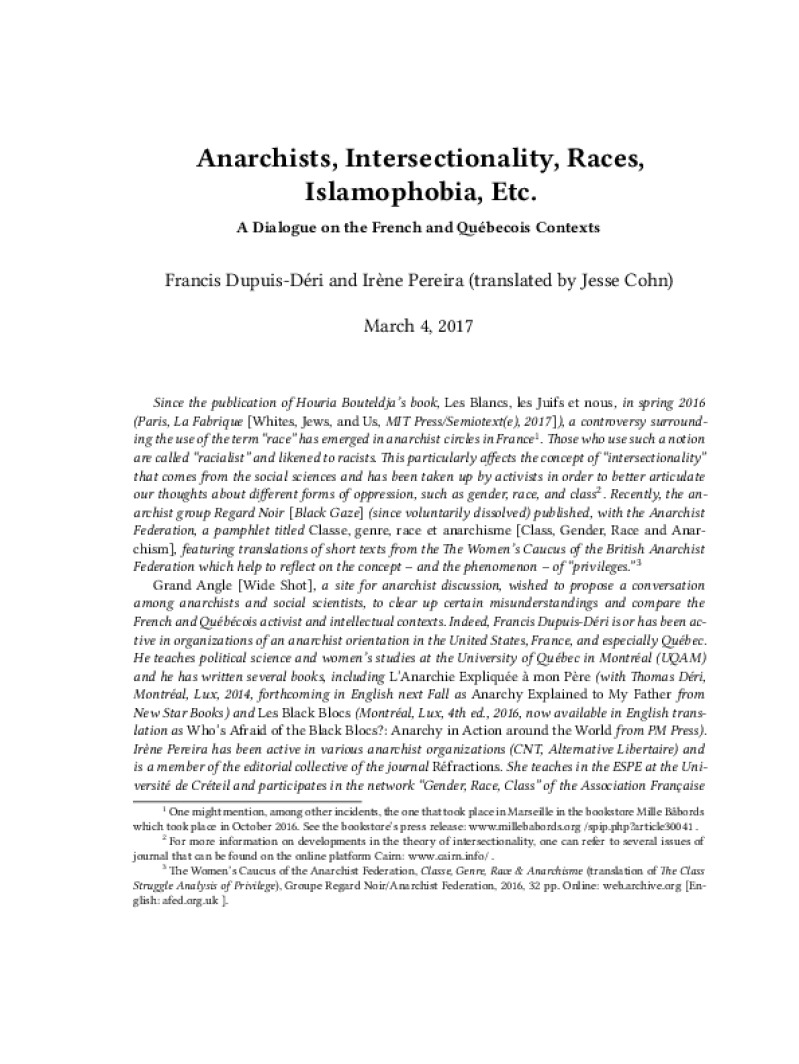Anarchists, Intersectionality, Races, Islamophobia, Etc.