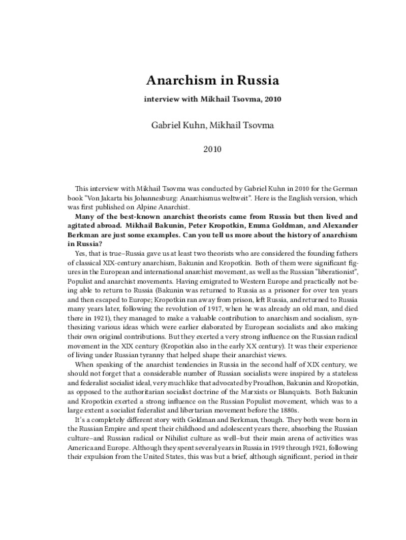 Author: Gabriel Kuhn, Mikhail Tsovma