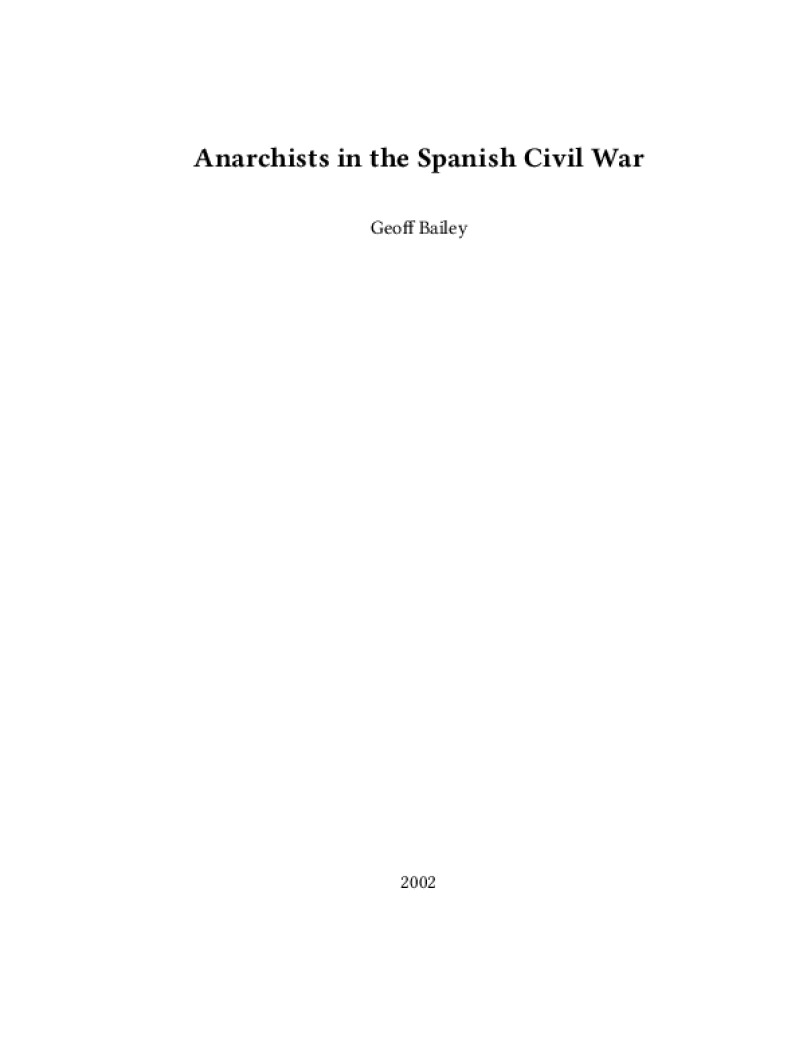 Zine Anarchists in the Spanish Civil War Author: Geoff BaileyPublished: 2002Language: enCatalog: The Anarchist Library23 pages. Read online: html • pdf •imposed pdf • a4 pdf • epub • muse • tex Share: We mail all zines to incarcerated people for free.