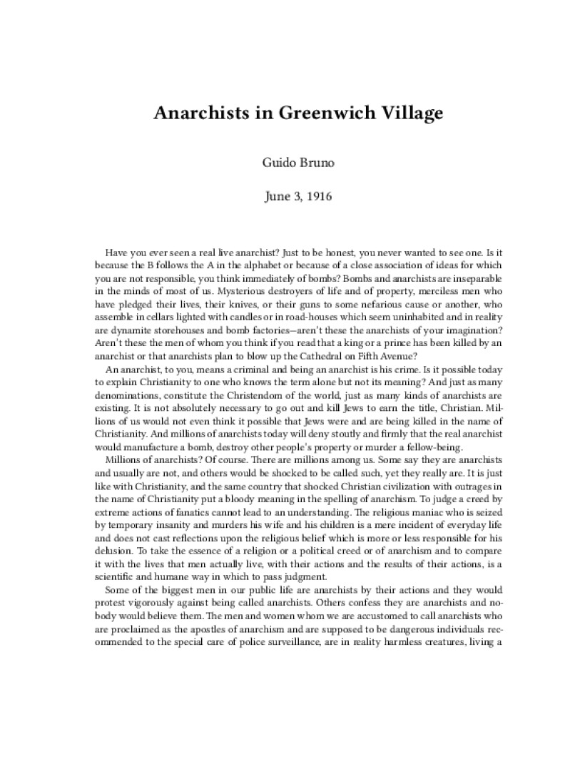 Zine Anarchists in Greenwich Village Author: Guido BrunoPublished: June 3, 1916Language: enCatalog: The Anarchist Library4 pages. Read online: html • pdf •imposed pdf • a4 pdf • epub • muse • tex Share: We mail all zines to incarcerated people for free.