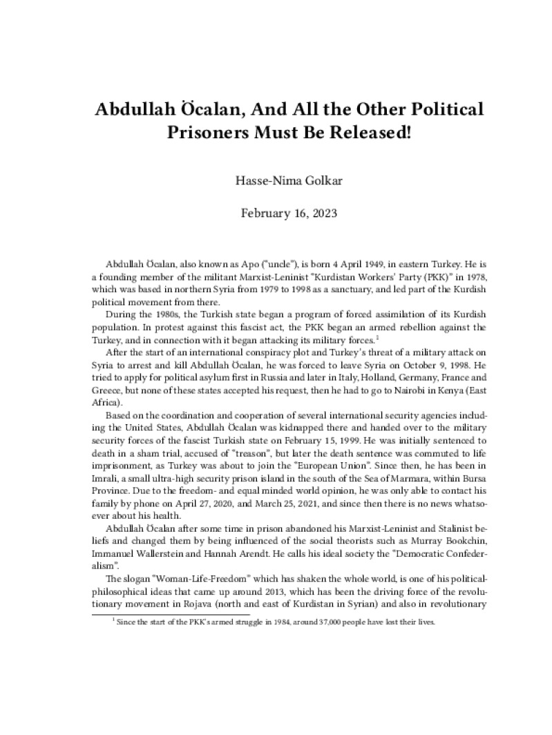Abdullah Öcalan, And All the Other Political Prisoners Must Be Released!