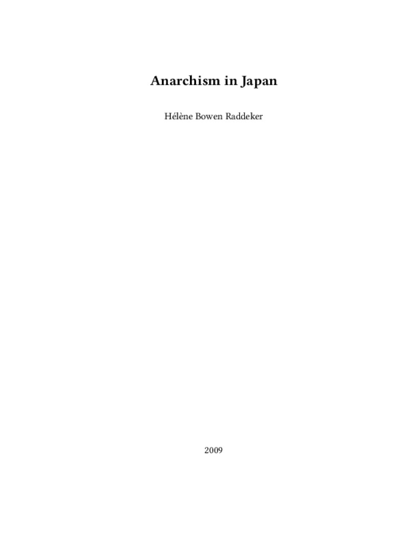 Zine Anarchism in Japan Author: Hélène Bowen RaddekerPublished: 2009Language: enCatalog: The Anarchist Library6 pages. Read online: html • pdf •imposed pdf • a4 pdf • epub • muse • tex Share: We mail all zines to incarcerated people for free.