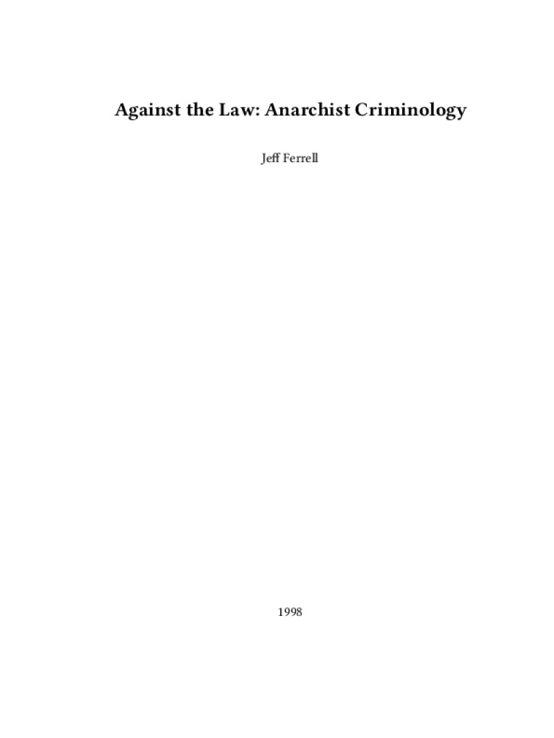 Zine Against the Law: Anarchist Criminology Author: Jeff FerrellPublished: 1998Language: enCatalog: The Anarchist Library12 pages. Read online: html • pdf •imposed pdf • a4 pdf • epub • muse • tex Share: We mail all zines to incarcerated people for free.