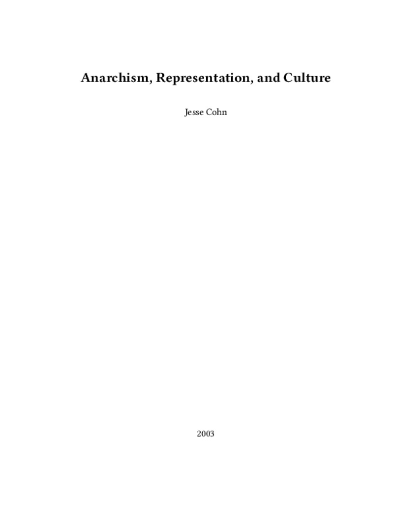 Zine Anarchism, Representation, and Culture Author: Jesse CohnPublished: 2003Language: enCatalog: The Anarchist Library8 pages. Read online: html • pdf •imposed pdf • a4 pdf • epub • muse • tex Share: We mail all zines to incarcerated people for free.