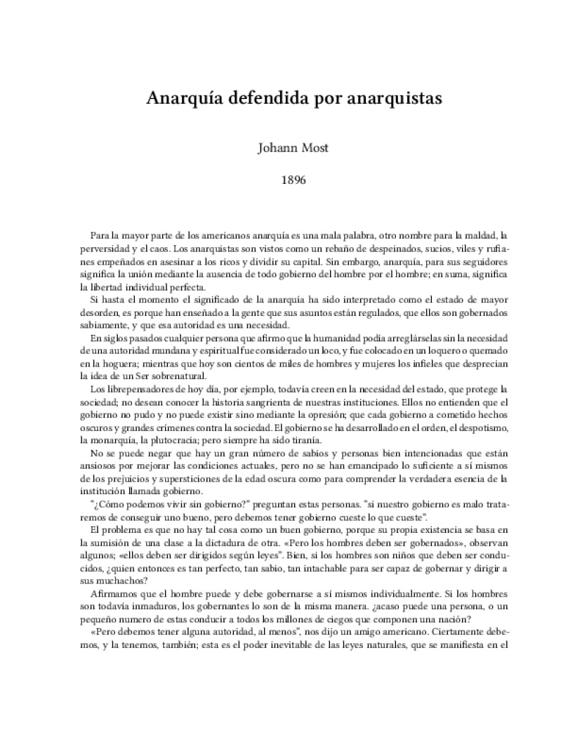 Zine Anarquía defendida por anarquistas Author: Johann MostPublished: 1896Language: esCatalog: The Anarchist Library4 pages. Read online: html • pdf •imposed pdf • a4 pdf • epub • muse • tex Share: We mail all zines to incarcerated people for free.