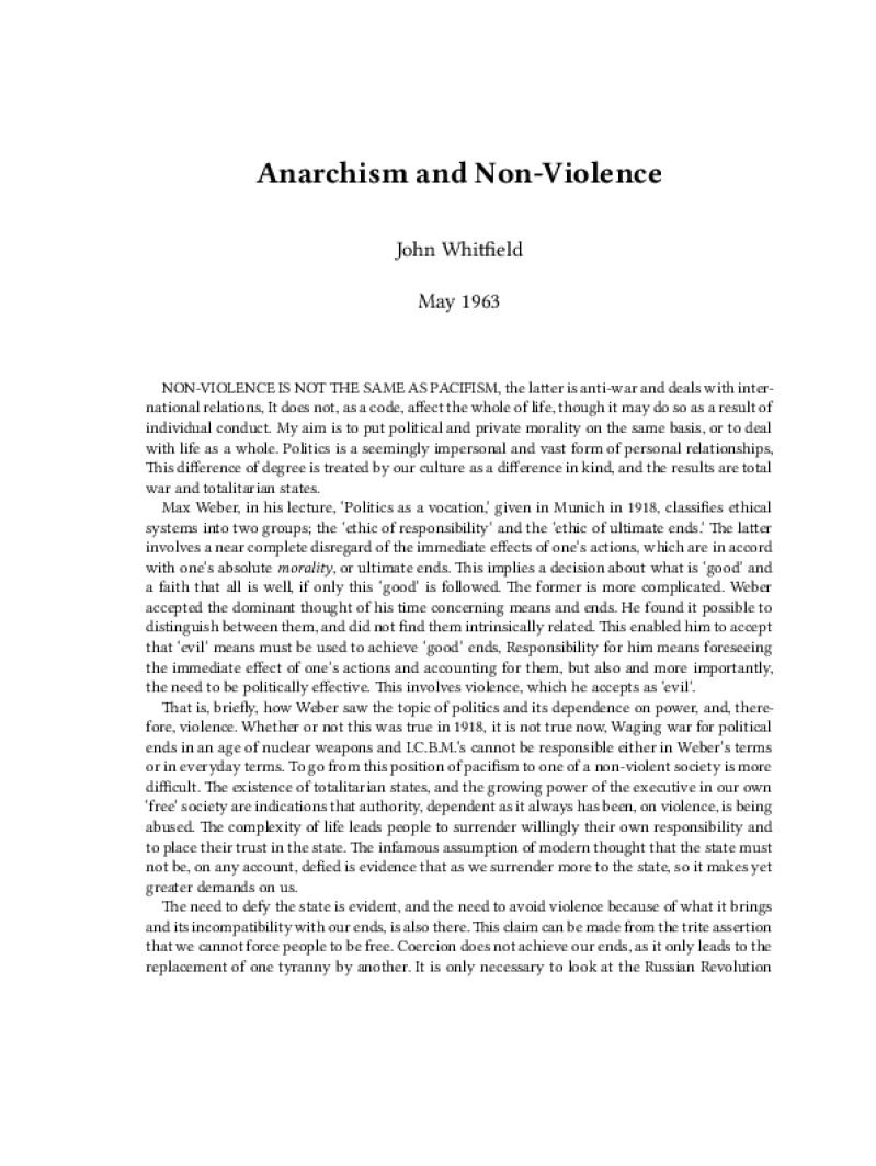Zine Anarchism and Non-Violence Author: John WhitfieldPublished: May 1963Language: enCatalog: The Anarchist Library3 pages. Read online: html • pdf •imposed pdf • a4 pdf • epub • muse • tex Share: We mail all zines to incarcerated people for free.