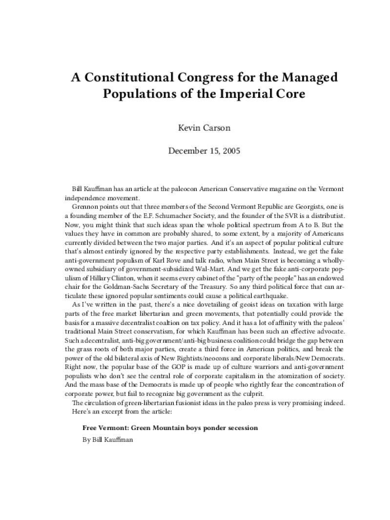 Zine A Constitutional Congress for the Managed Populations of the Imperial Core Author: Kevin CarsonPublished: December 15, 2005Language: enCatalog: The Anarchist Library5 pages. Read online: html • pdf •imposed pdf • a4 pdf • epub • muse • tex Share: We mail all zines to incarcerated people for free.