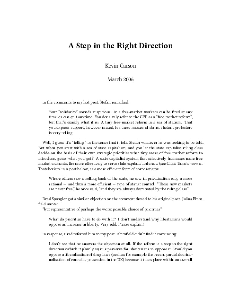 Zine A Step in the Right Direction Author: Kevin CarsonPublished: March 2006Language: enCatalog: The Anarchist Library7 pages. Read online: html • pdf •imposed pdf • a4 pdf • epub • muse • tex Share: We mail all zines to incarcerated people for free.
