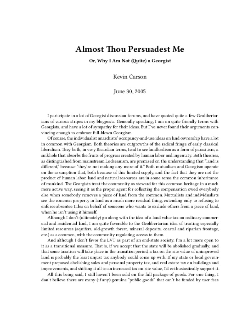 Zine Almost Thou Persuadest Me Author: Kevin CarsonPublished: June 30, 2005Language: enCatalog: The Anarchist Library3 pages. Read online: html • pdf •imposed pdf • a4 pdf • epub • muse • tex Share: We mail all zines to incarcerated people for free.