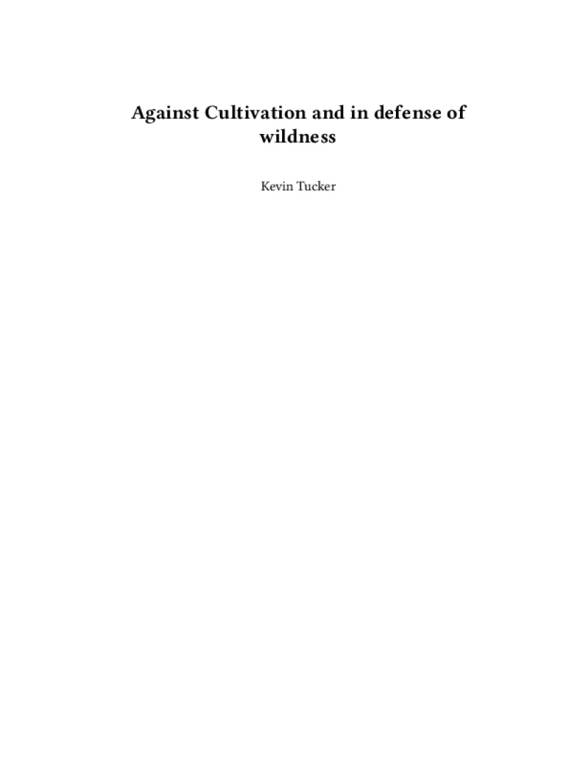 Zine Against Cultivation and in defense of wildness Author: Kevin TuckerLanguage: enCatalog: The Anarchist Library12 pages. Read online: html • pdf •imposed pdf • a4 pdf • epub • muse • tex Share: We mail all zines to incarcerated people for free.