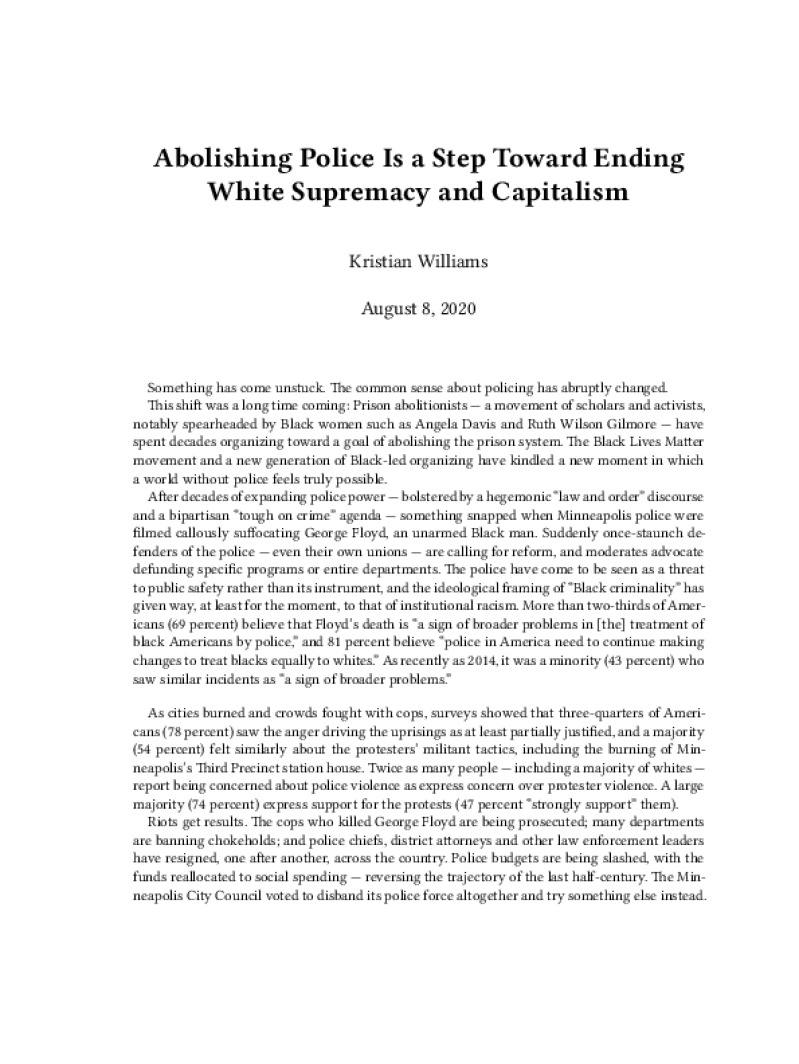 Abolishing Police Is a Step Toward Ending White Supremacy and Capitalism
