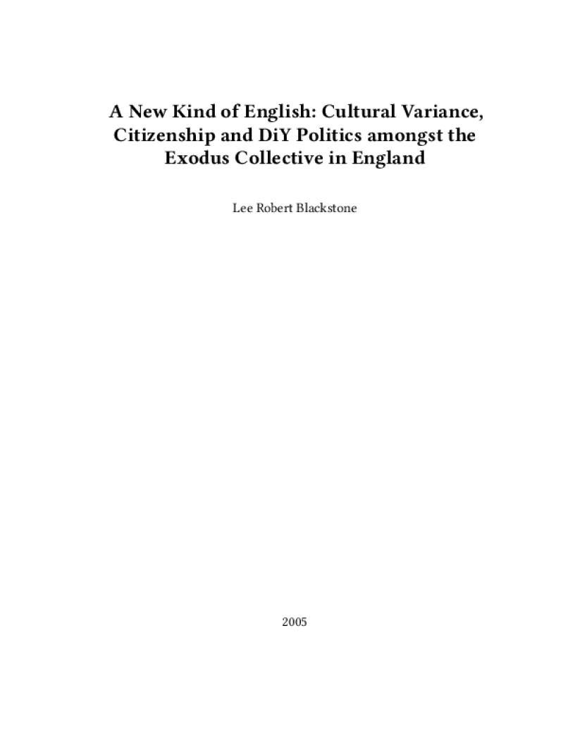 Zine A New Kind of English: Cultural Variance, Citizenship and DiY Politics amongst the Exodus Collective in England Author: Lee Robert BlackstonePublished: 2005Language: enCatalog: The Anarchist Library22 pages. Read online: html • pdf •imposed pdf • a4 pdf • epub • muse • tex Share: We mail all zines to incarcerated people for free.