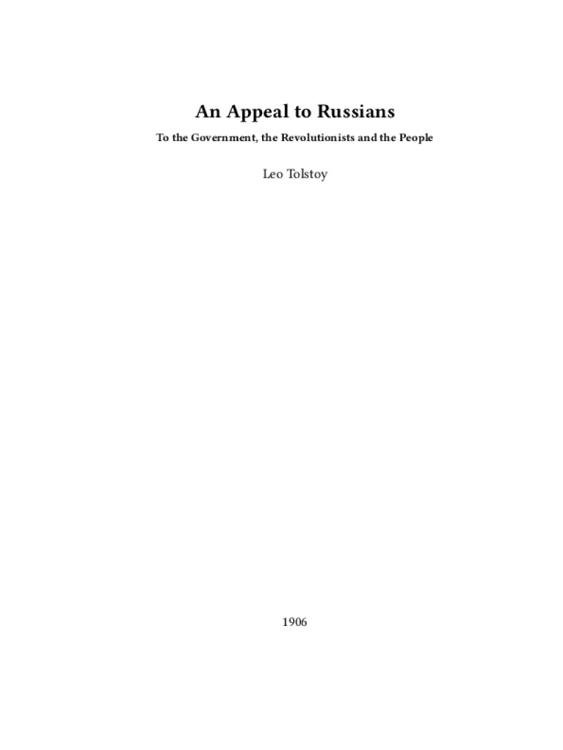 Zine An Appeal to Russians Author: Leo TolstoyPublished: 1906Language: enCatalog: The Anarchist Library12 pages. Read online: html • pdf •imposed pdf • a4 pdf • epub • muse • tex Share: We mail all zines to incarcerated people for free.