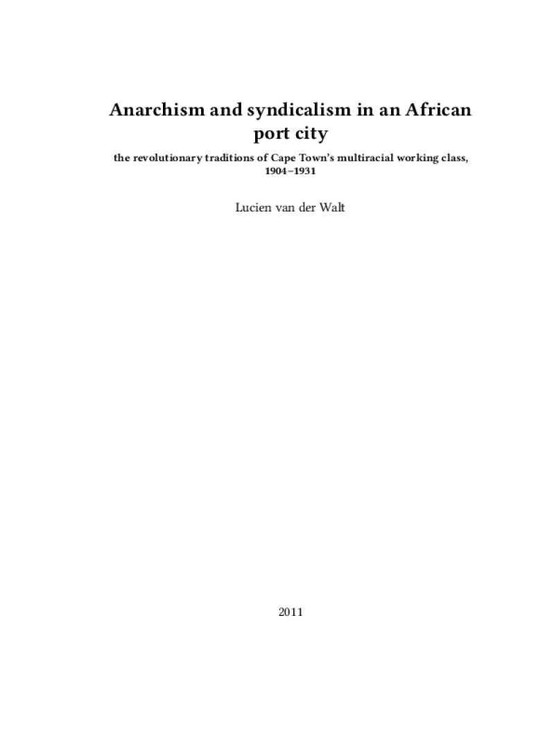 Zine Anarchism and syndicalism in an African port city Author: Lucien van der WaltPublished: 2011Language: enCatalog: The Anarchist Library36 pages. Read online: html • pdf •imposed pdf • a4 pdf • epub • muse • tex Share: We mail all zines to incarcerated people for free.