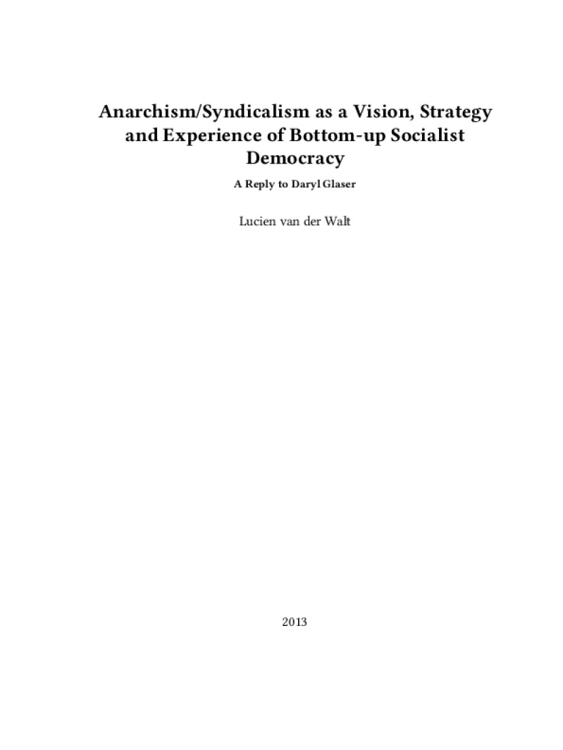 Zine Anarchism/Syndicalism as a Vision, Strategy and Experience of Bottom-up Socialist Democracy Author: Lucien van der WaltPublished: 2013Language: enCatalog: The Anarchist Library13 pages. Read online: html • pdf •imposed pdf • a4 pdf • epub • muse • tex Share: We mail all zines to incarcerated people for free.