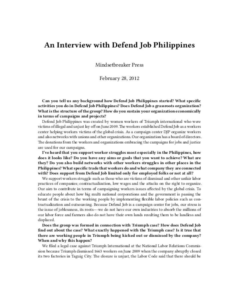 An Interview with Defend Job Philippines