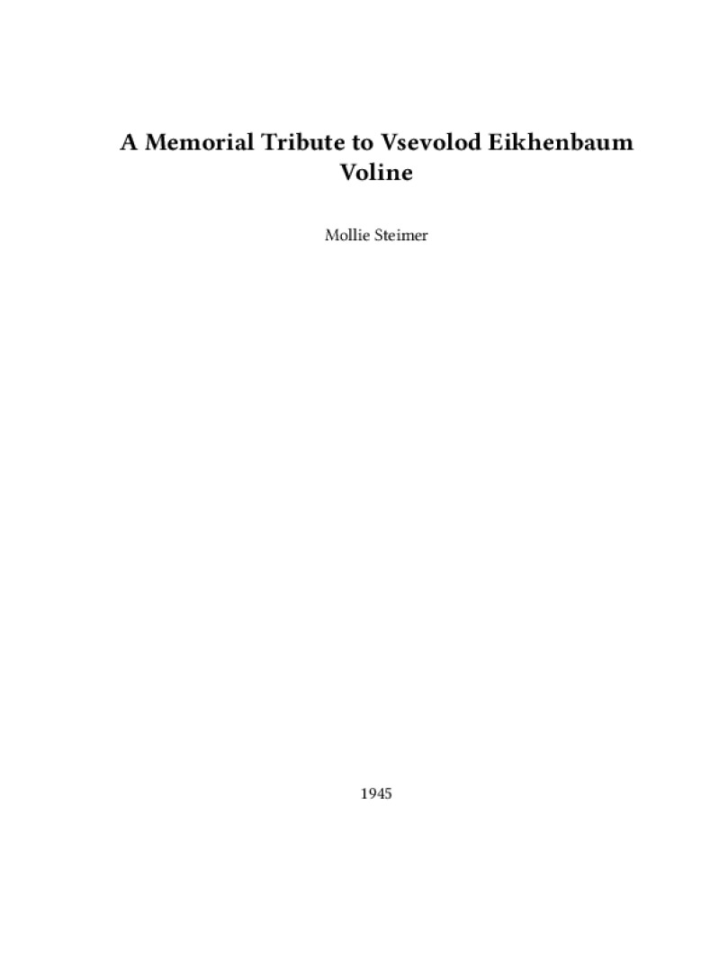 Zine A Memorial Tribute to Vsevolod Eikhenbaum Voline Author: Mollie SteimerPublished: 1945Language: enCatalog: The Anarchist Library9 pages. Read online: html • pdf •imposed pdf • a4 pdf • epub • muse • tex Share: We mail all zines to incarcerated people for free.