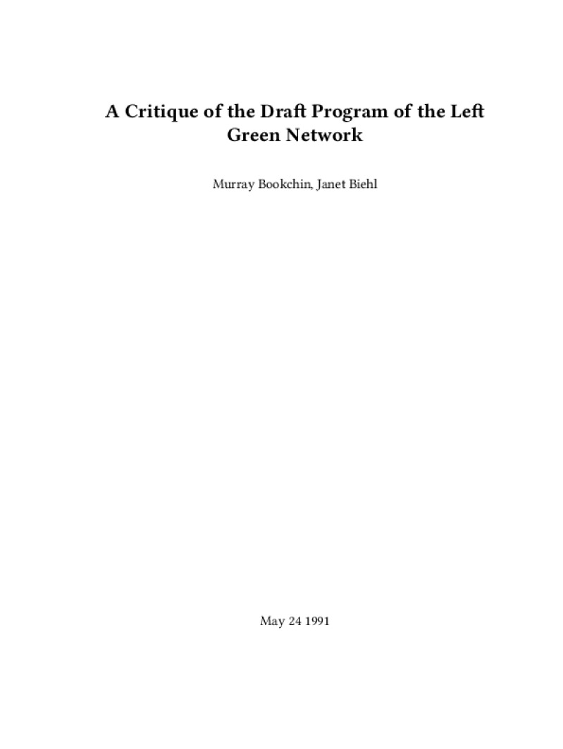 A Critique of the Draft Program of the Left Green Network