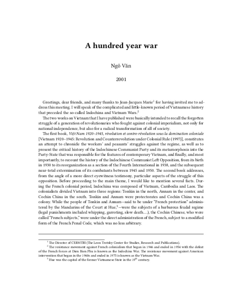 Zine A hundred year war Author: Ngô V?nPublished: 2001Language: enCatalog: The Anarchist Library12 pages. Read online: html • pdf •imposed pdf • a4 pdf • epub • muse • tex Share: We mail all zines to incarcerated people for free.