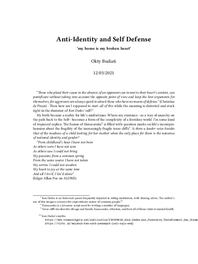 Zine Anti-Identity and Self Defense Author: Okty BudiatiPublished: 12/03/2021Language: enCatalog: The Anarchist Library3 pages. Read online: html • pdf •imposed pdf • a4 pdf • epub • muse • tex Share: We mail all zines to incarcerated people for free.