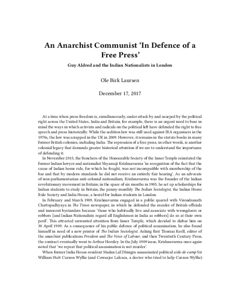 An Anarchist Communist ‘In Defence of a Free Press’