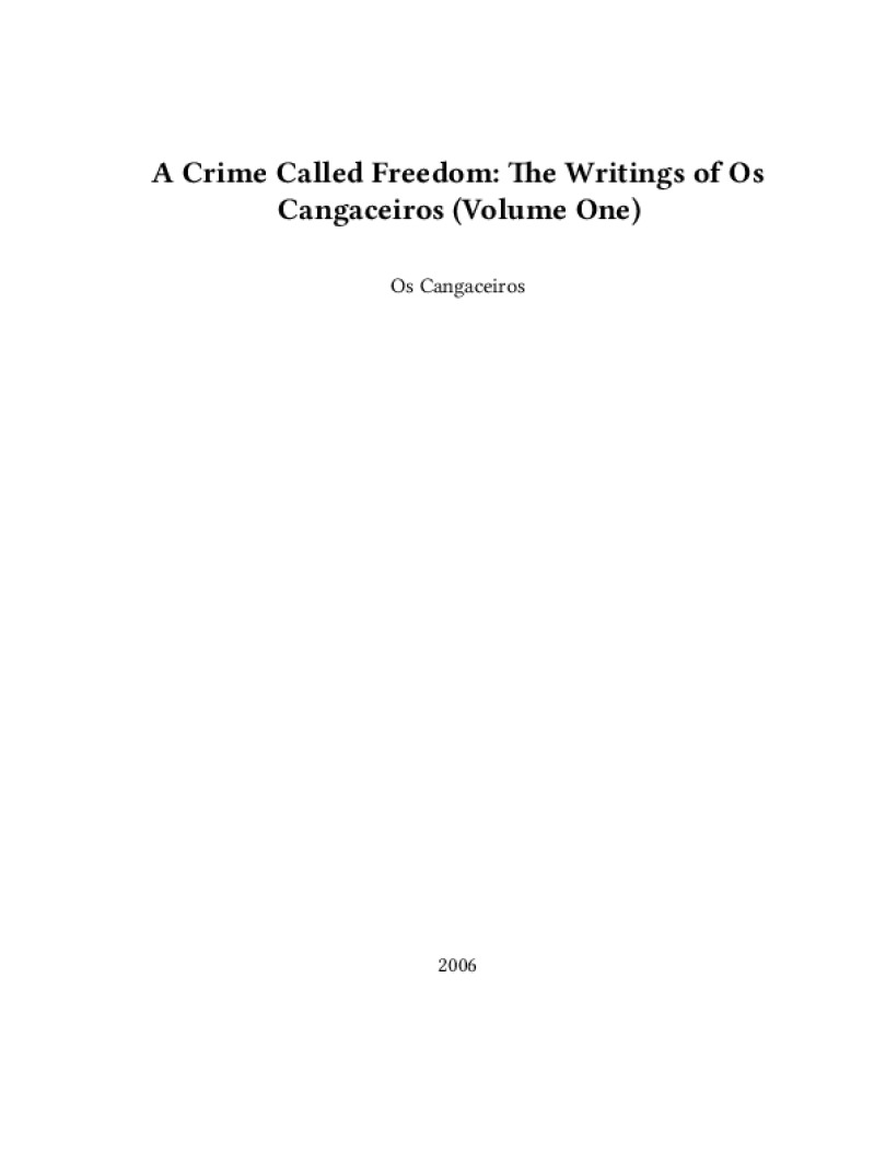 Zine A Crime Called Freedom: The Writings of Os Cangaceiros (Volume One) Author: Os CangaceirosPublished: 2006Language: enCatalog: The Anarchist Library62 pages. Read online: html • pdf •imposed pdf • a4 pdf • epub • muse • tex Share: We mail all zines to incarcerated people for free.