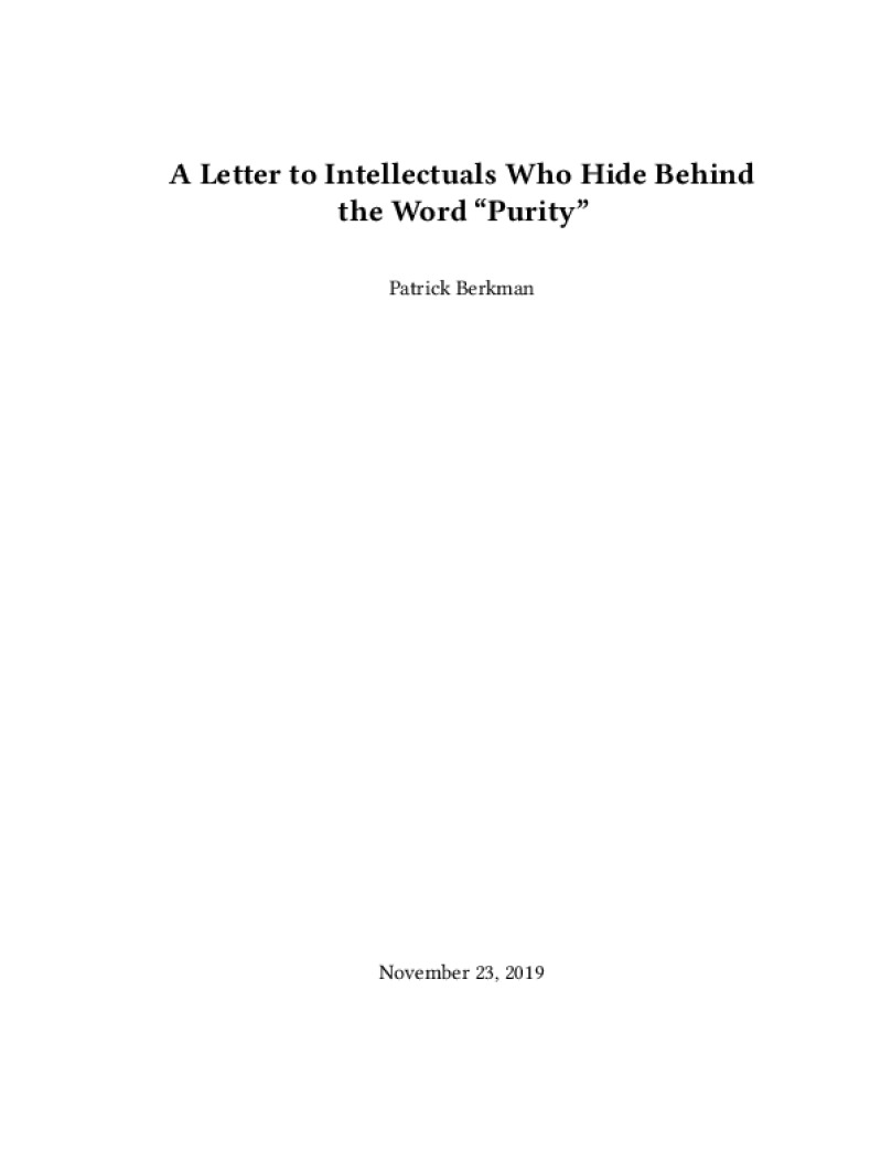 A Letter to Intellectuals Who Hide Behind the Word “Purity”